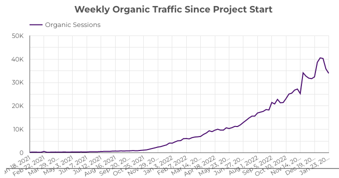 The client operated an e-commerce site but didn’t have a strategic content marketing or SEO plan to drive site visits. In fact, prior to working with us, the client didn’t have Google Analytics installed, showing they weren’t monitoring or optimizing for traffic growth.